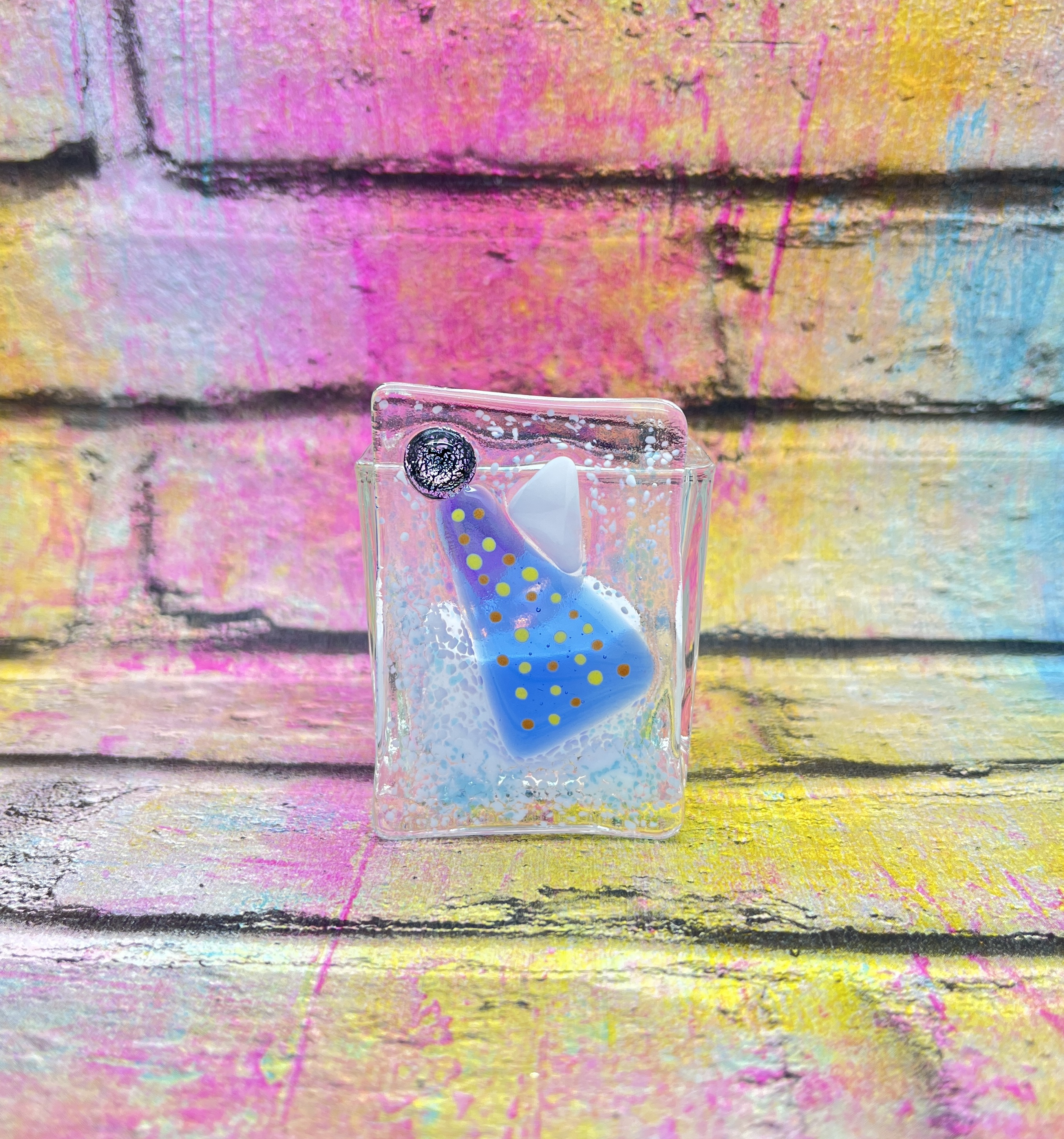 - Handcut and handcrafted fused glass front